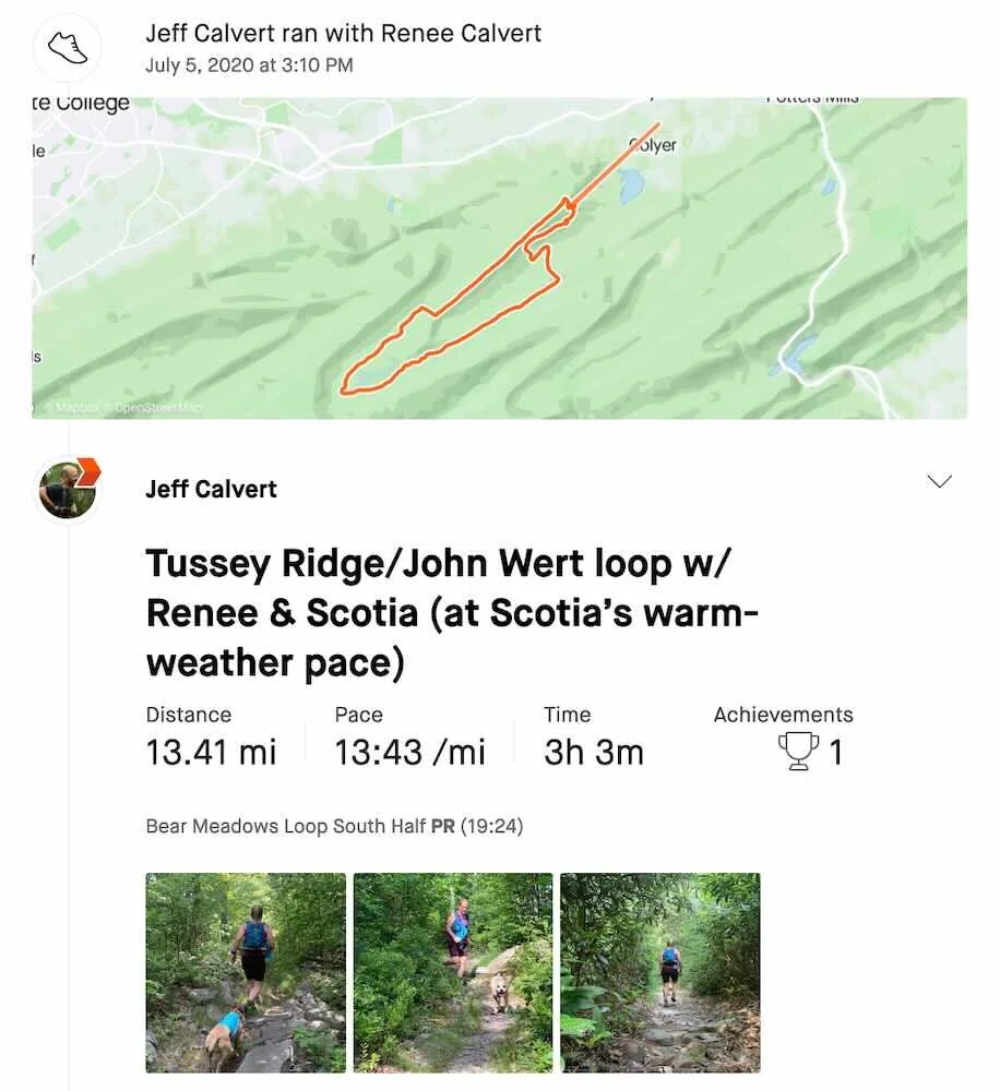 Tussey Ridge/John Wert loop w/ Renee & Scotia (at Scotia’s warm-weather pace)